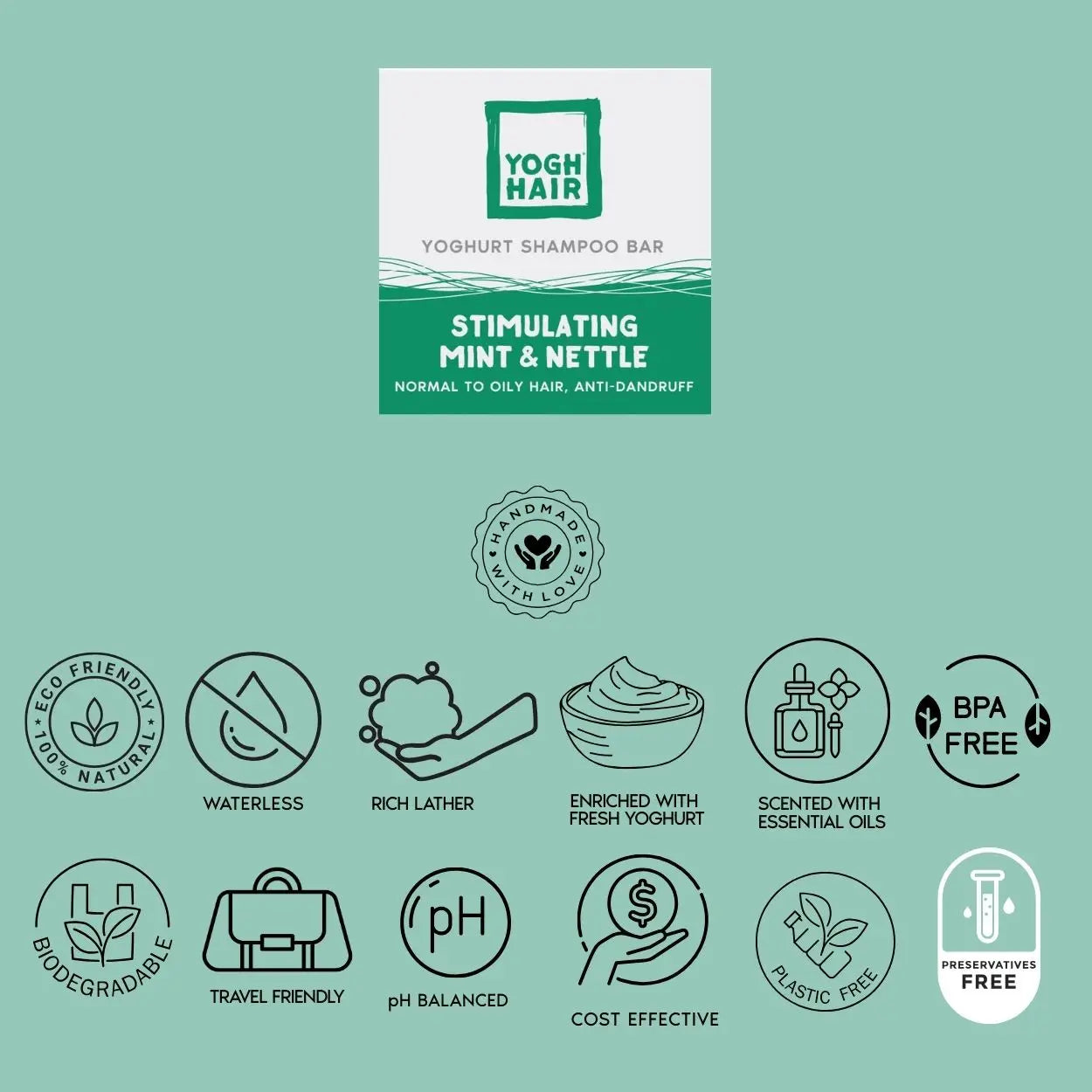 YOGHHAIR® Stimulating Solid Shampoo Mint and Nettle, 110g.